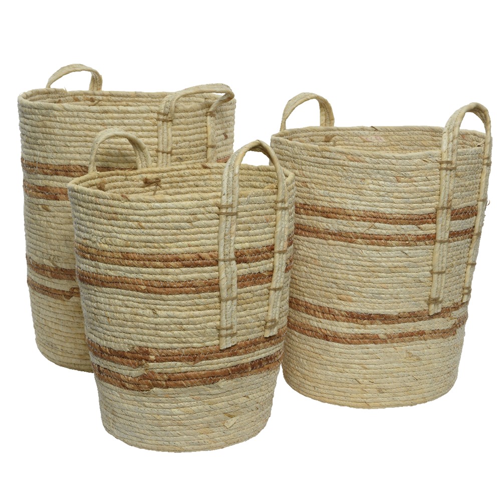 Basket, set of 3 pcs, straw, natural, Ø32 xH38 cm; Ø37 xH43 cm; Ø42 xH48 cm