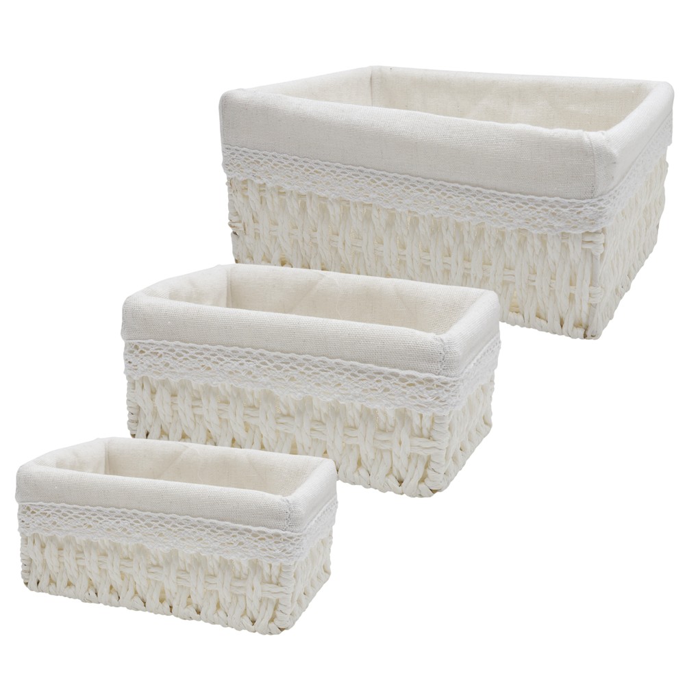 Basket, textile material, white, 26x20xH12 cm/22x16xH9.5 cm/18x12xH8 cm