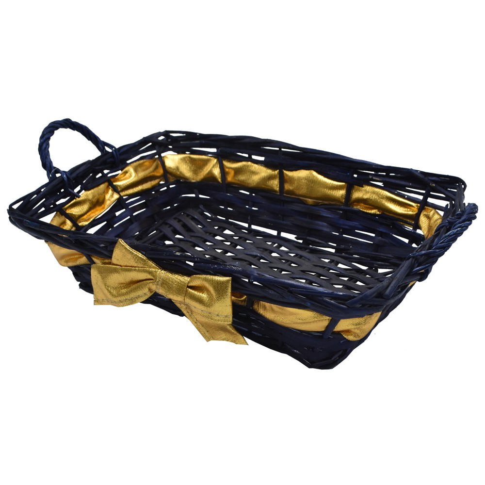 Basket, with handle, wicker, blue/gold, 36x27 cm