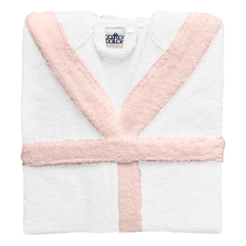 Bathrobe, for girls, cotton, white/pink, 350 gr (age 14 years)