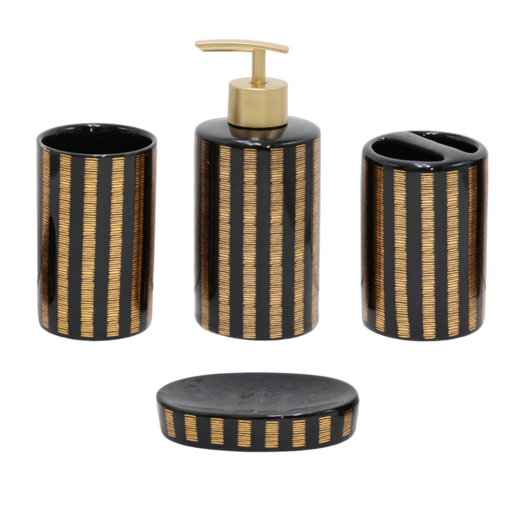 Bathroom accessory set, 4 pieces, ceramic, black/gold