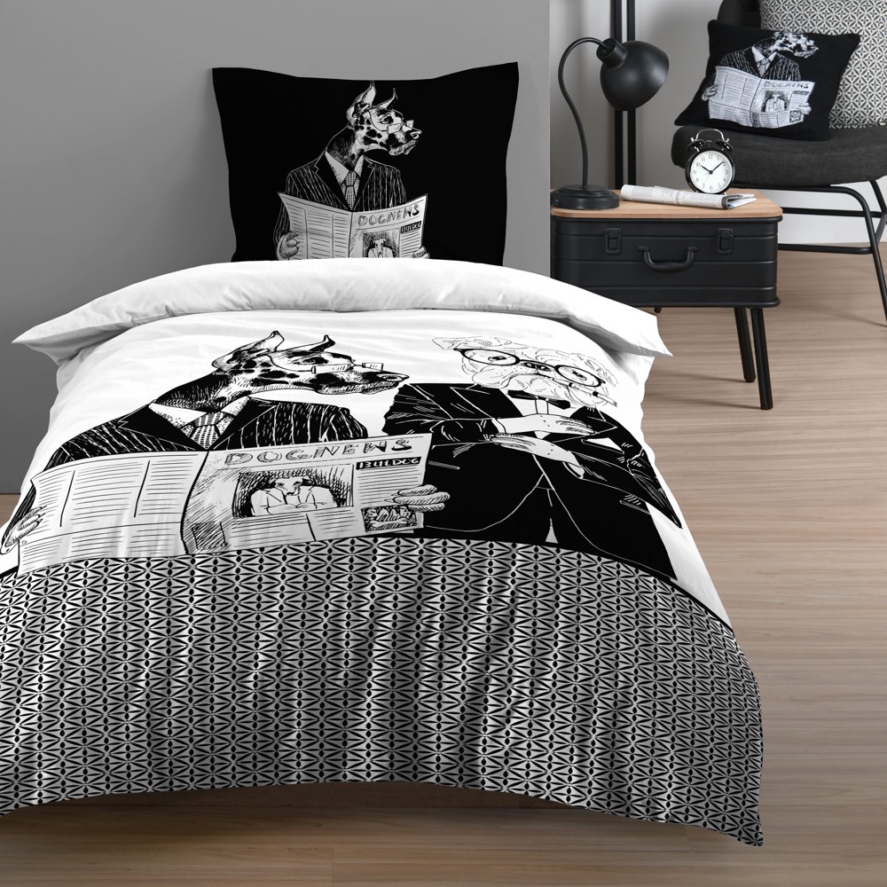 Bedlinen set, Noir, single, cotton, grey/white, 140x200 cm; 63x63 cm (x1)