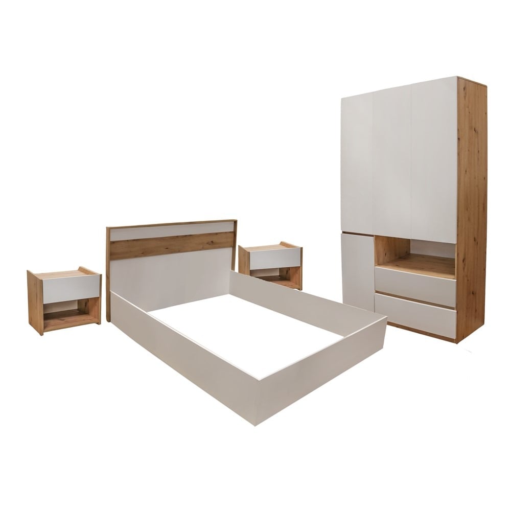 This bedroom set offers an excellent combination of modern styling, functionality and adaptability, creating a wonderful and comfortable environment for relaxation and sleep. The bedroom consists of; 1-Wardrobe with dimensions: 135x52xH205 cm. This wardrobe with its generous dimensions offers enough space for storing and organizing your clothes and clothes. 2-2-piece nightstand: 42x35xH42 cm. Designed with a modern and attractive look with bedroom style. 3- Double bed: 160x200xH92.5 cm. The double bed offers the peace and comfort we all seek after a tiring day at work. Constructed with a durable structure and attractive design to match the style of the Aulona bedroom.