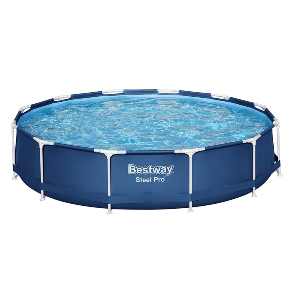 This Steel Pro™ pool set is the ultimate in portability, price and durability. The walls of the 6,473 liter pool are made of Tritech™, a combination of durable PVC and polyester. The frame is made of corrosion-resistant metal and is easy to assemble and disassemble. And when the bathing season is over, simply connect the outlet valve to a garden hose to drain the water. In addition, the round shape of the Steel Pro pool makes it easier to set up, improves stability and saves space as the pool does not require lateral supports. A filter pump is included in the pool set to keep the water crystal clear and clean.