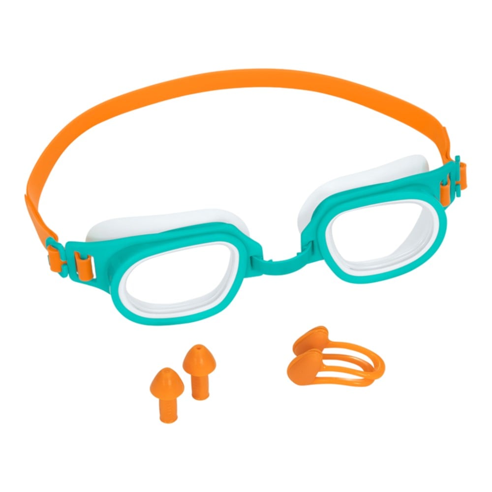 You're reviewing:Bestway swimming goggles set with nose and ear protectors, polycarbonate/plastic, various colors, 7+ years