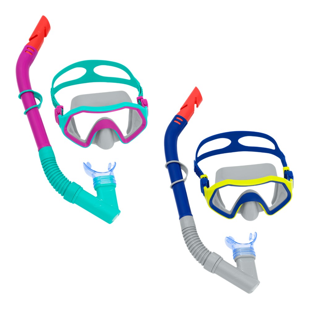 Bestway Tubular Swimming Mask Set, Polycarbonate/Plastic, 2 Assorted Colors, 7+ Years