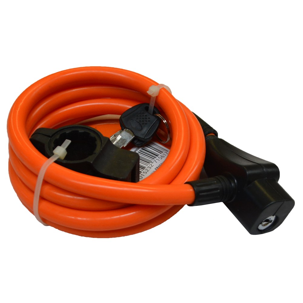 Bicycle cabe lock pink with clump 100cm. This keyed cable lock has an integrated keyed locking mechanism designed for strong pick resistance. Steel Cable provides maximum performance. This cable is made out of flexible steel cables for strong cut resistance. Complete with a protective vinyl coating that help prevent scratching. This cable is perfect for use with bikes, residential gates and fences, grills, lawnmowers, tools and ladders.