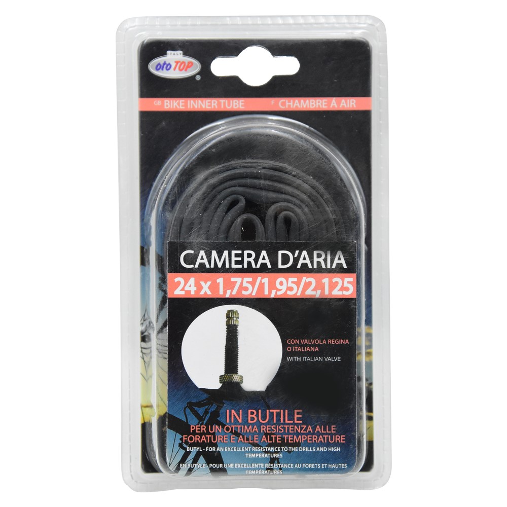 Bicycle inner tube, Ototop, 24x1.75/1.90/2.12 is a universal inner tube that's 20 percent thicker than ordinary tubes for up to 40 percent more resistance. Bicycle Tube: 24" universal inner tube, Unbreakable, perfectly welded valve, Consistent wall thickness throughout the tube.