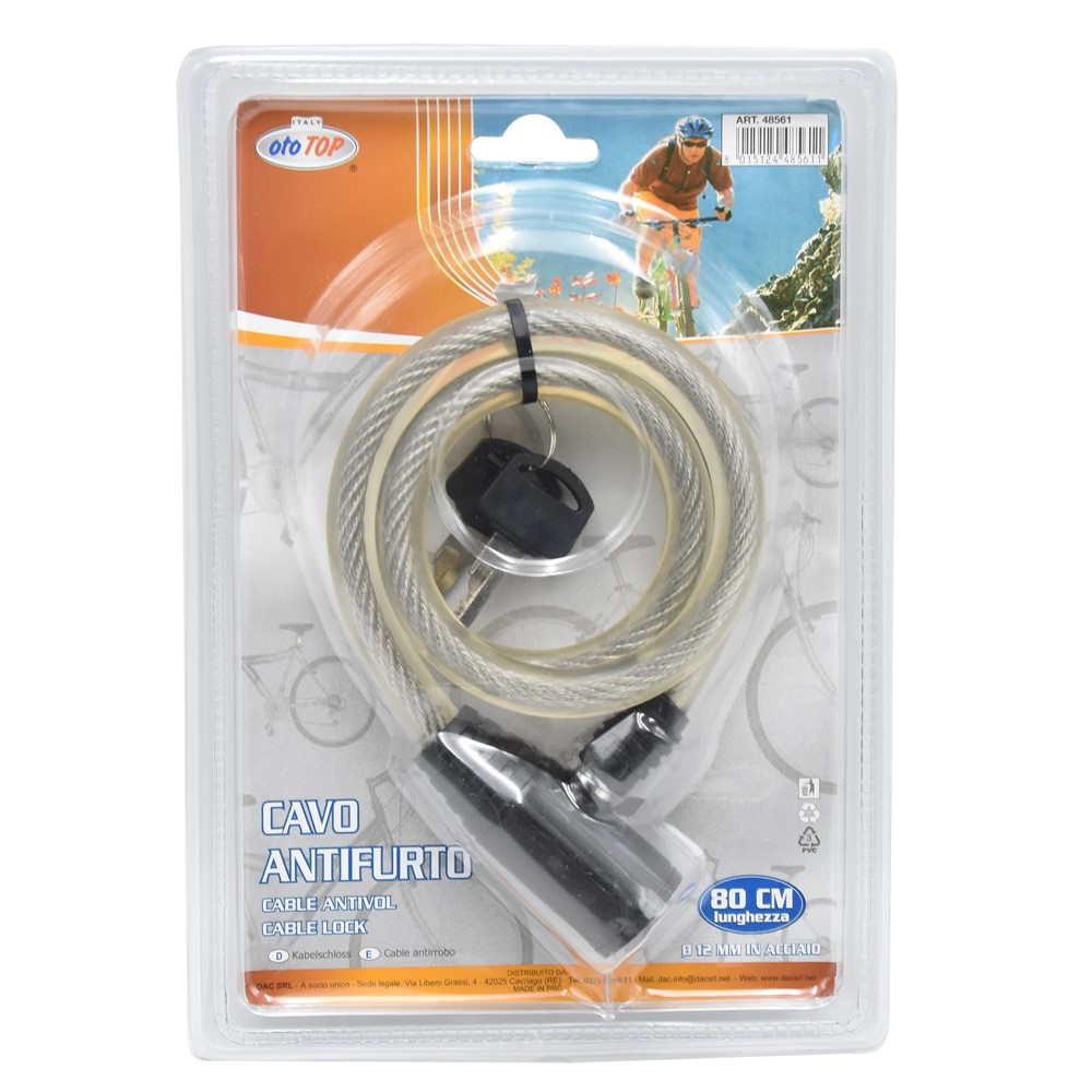 Bicycle securin cable, Otto Top, steel, with PVC coating with 2 keys, Size: 12 X 80 cm