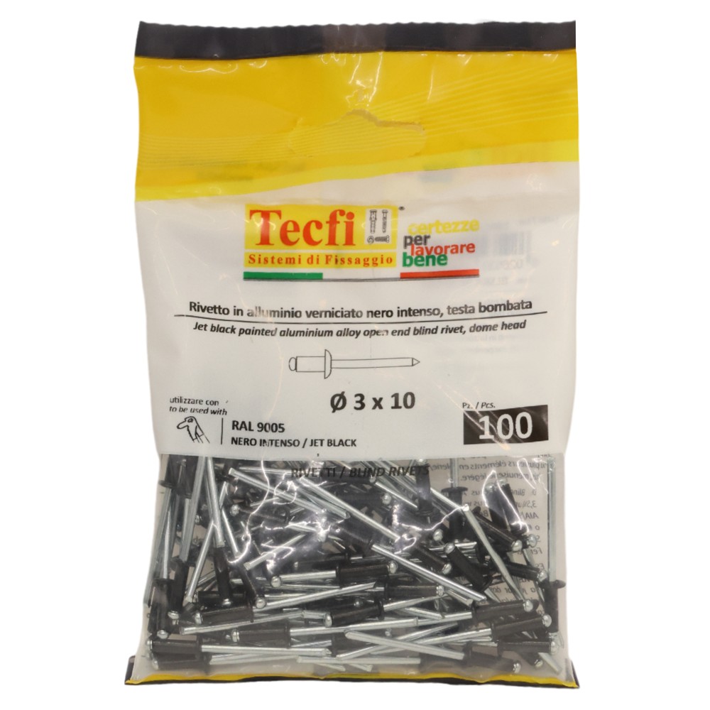 black dome blind rivet,al/zp steel RAL 9005, Ø 3x10mm, Bag 100