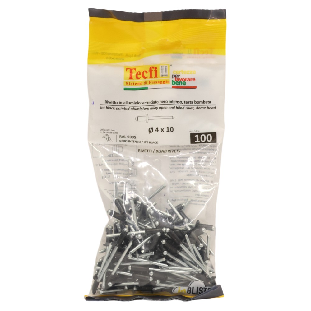 black dome blind rivet,al/zp steel RAL 9005, Ø 4x10mm, Bag 100