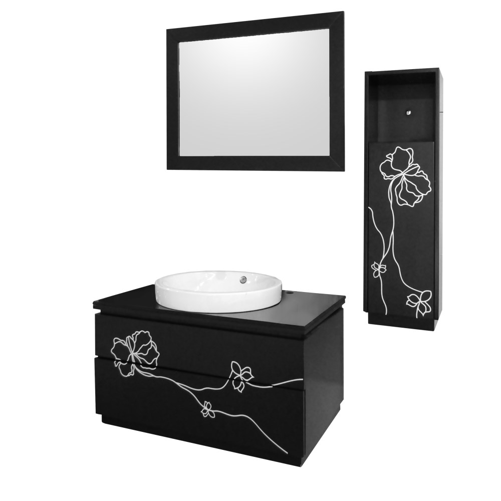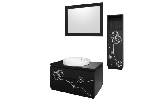 The “Orchide”- complete set of bathroom furniture presents an elegant design that will rejuvenate your bathroom. The collection’s material is PVC which offers high-humidity resistance, easy to clean and durable surfaces for long-lasting beauty.Black furniture décor composed of white flowers fit very well in environments with modern tiles in monochrome light colors like cream, white, lila, etc.. This is a collection that includes: basin, basin- cabinet, mirror & side cabinet. All of the components are pre-assembled and ready-to-install in a quick and easy way. With “Orchide”set you can remodel your bathroom anytime by removing the wall storage unit anywhere your space needs even more storage. The complete bathroom makeover with“Orchide” brings innovation and fun in your home.