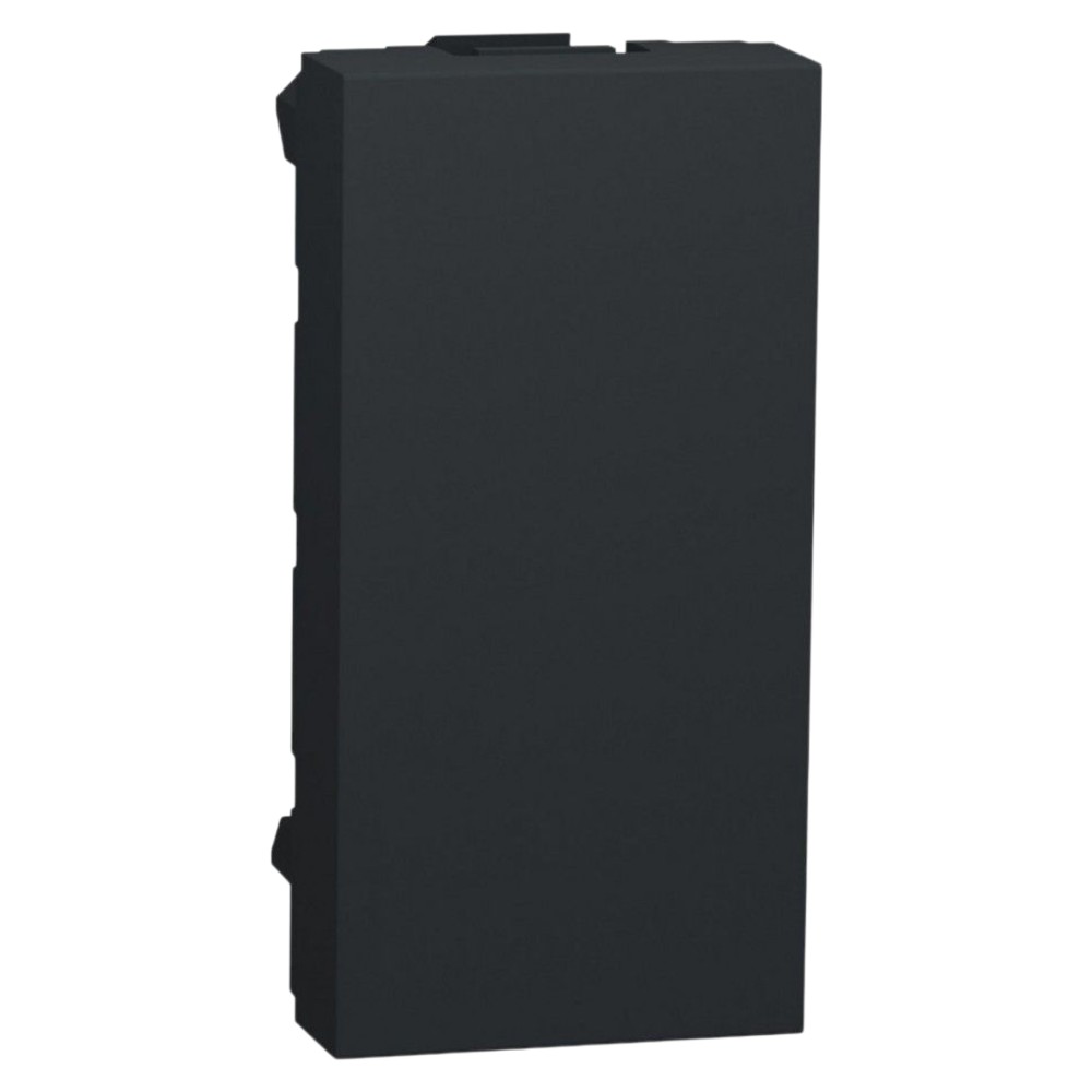 If you have installed sockets and switches that you needed and still have free place (module), you can use blind covers.The black color makes it easily combined with every cover color.