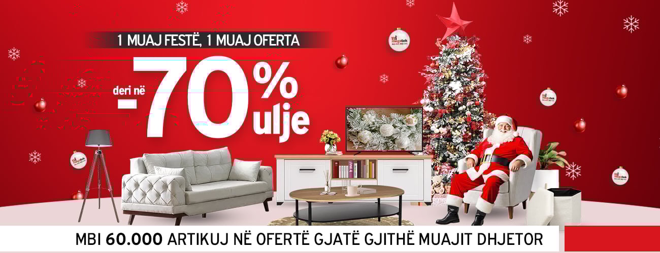 Keni përgatitur një listë me çdo produkt që ju nevojitet apo që thjesht dëshironi ta keni në shtëpinë tuaj? Nëse jo, ju sugjerojmë ta bëni gati pasi në Megatek kemi përgatitur një listë të gjatë e të pasur me mbi 100 mijë artikuj për familje dhe biznese nga çdo kategori. Por jo vetëm kaq. Nga data 1 deri më 31 dhjetor plot 60.000 artikuj do të vendosen në dispozicionin tuaj çdo ditë. Do të keni mundësi të gjeni artikujt që dëshironi me zbritje deri në 70%. Blerjet bëhen më emocionuese kur çdo ditë vjen një ofertë e re dhe e shumëpritur. Përfitoni nga kjo mundësi për të kompletuar ose rinovuar shtëpinë ose biznesin tuaj me artikujt më cilësorë dhe të trendeve të fundit botërorë.