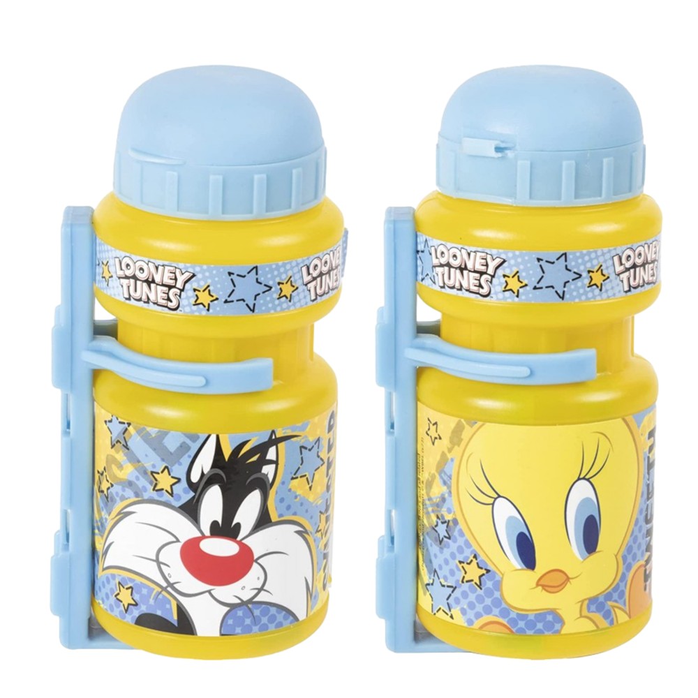Water bottle for children's bicycles. With a capacity of 350 ml and designed with the famous characters of the Looney Tunes cartoons, it is an accessory that should not be missed. Its shape and construction make the latter a universal model and very easy to mount on any children's bicycle.