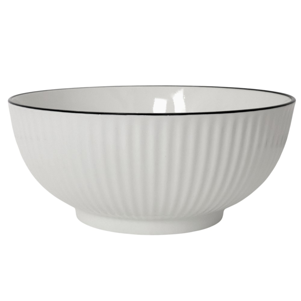 Serve soups, salads, or cereals in style with this ceramic bowl, white with a blue rim. Measuring 20 cm in diameter, it brings elegance and functionality to any table, making every meal more special and modern.