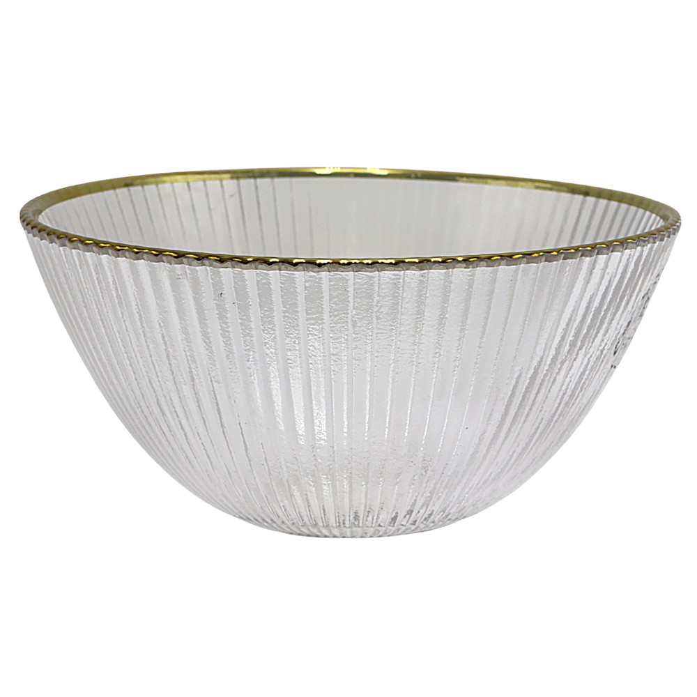 The bowl is an elegant and modern addition to any dinnerware set, ideal for serving cereals, soups, salads, or ice cream. Made from high-quality glass, the bowl is strong and easy to clean. Its unique two-color design, white/gold, adds an artistic and elegant touch, making it stand out from traditional bowls. With a diameter of 14.5 cm, this bowl is the right size for individual portions, making it very versatile in use. Use it for serving at formal dinners, family gatherings, or simply to give your everyday meals a more refined appearance. It's a combination of functionality and aesthetics, making every serving a special experience.