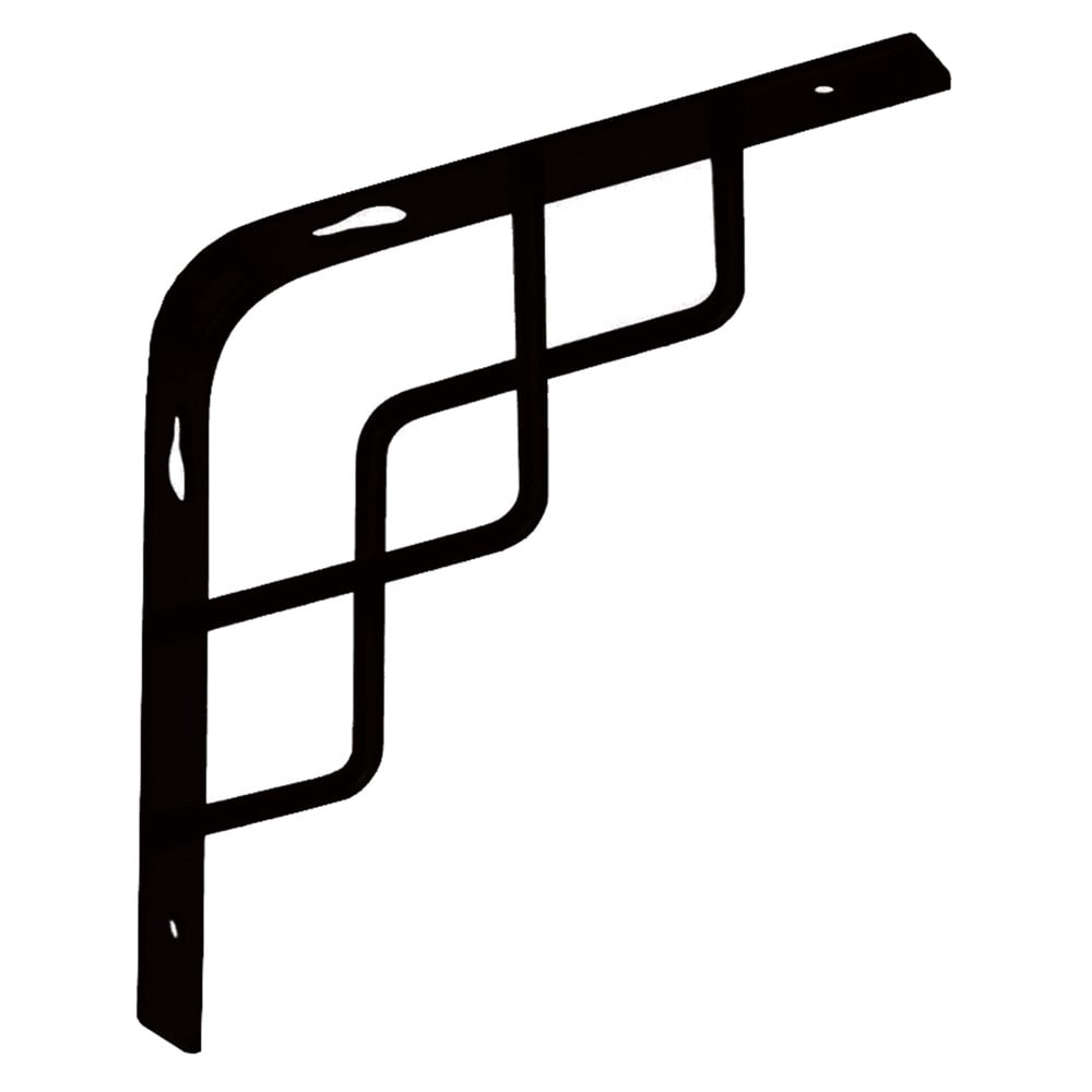 Shelf bracket, made of sturdy steel material, in matte black color, with dimensions of 15x15 cm, which serves as a decorative and functional accessory for various environments. The constituent material is resistant to use, heavy weights, rust or abrasion. It is used for wall mounting of self-supporting shelves and to enable the installation of LSS (Long Span Storage) type shelves, but it can also find other applications in professional and non-professional environments.