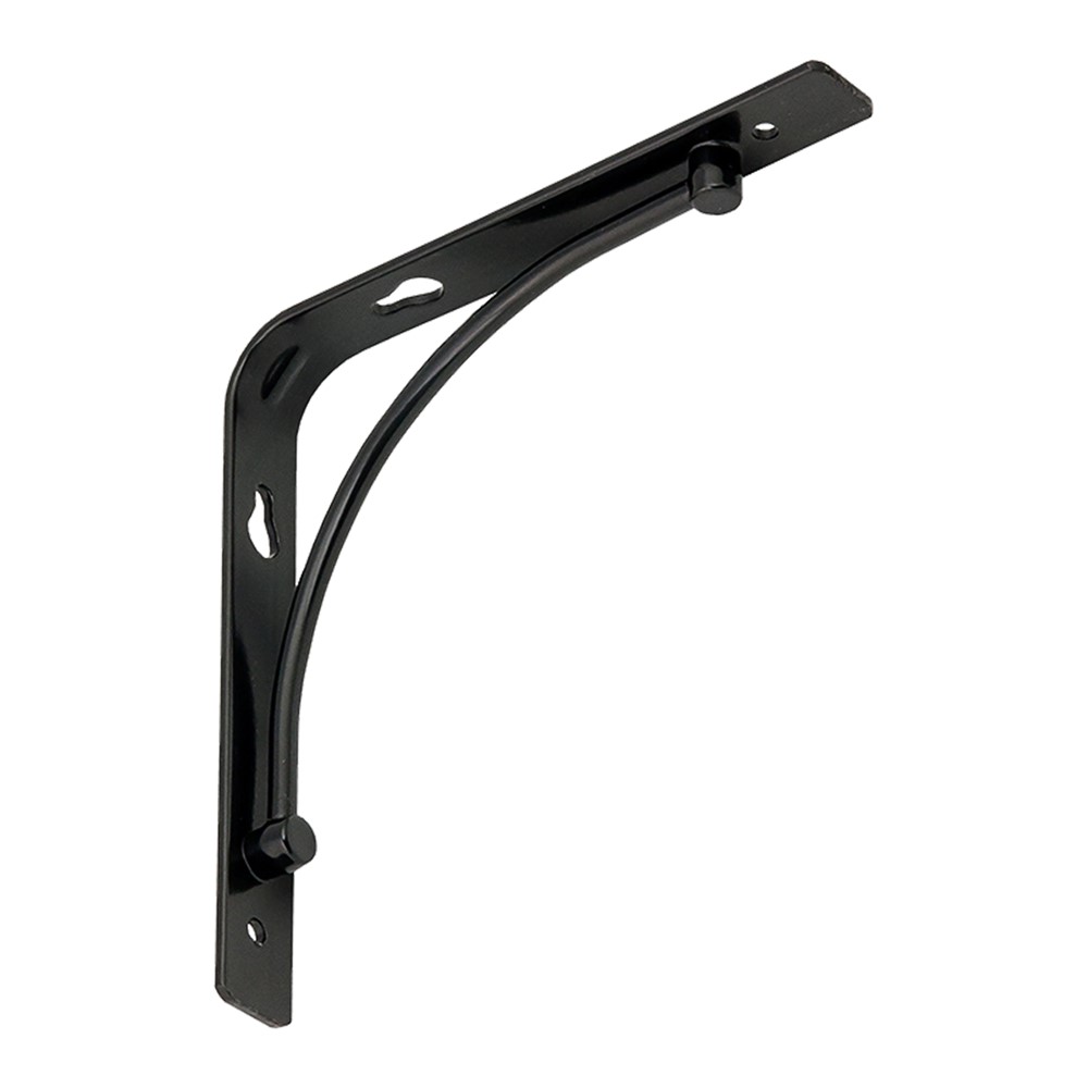 Shelf bracket, made of sturdy steel material, in matte black color, with dimensions of 20x20 cm, which serves as a decorative and functional accessory for various environments. The constituent material is resistant to use, heavy weights, rust or abrasion. It is used for wall mounting of self-supporting shelves and to enable the installation of LSS (Long Span Storage) type shelves, but it can also find other applications in professional and non-professional environments.