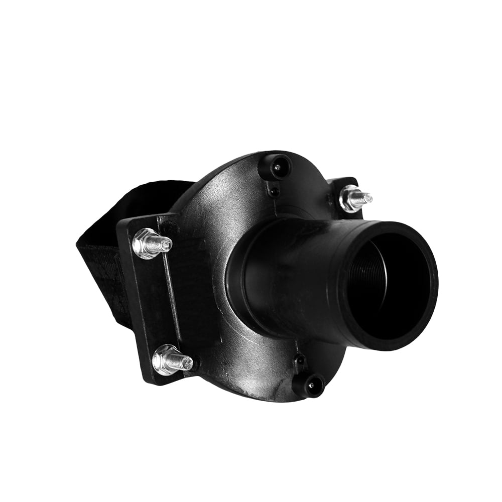 Tapping saddle HDPE 140mm with gate 63mm used widely today in the European market for making drinking water, natural gas from main lines without the need to interrupted water or gas from their main lines, this becomes possible through elektofusive attachment. This tapping saddle makes possible the unification of Ø 63mm tube with main line Ø 140. This coupling is made possible by cutting the tube Ø 140 by knife that is on elektrofashet . This knife by rotation with keys enables the cutting of the main water pipe and after it is cut by turning in the opposite enables the extraction of part of the main pipe is cut out. Manufactured with European standards, resistant to corrosive materials, high resistance to deformation of land and resistant to pressure up to 16 Bar.
