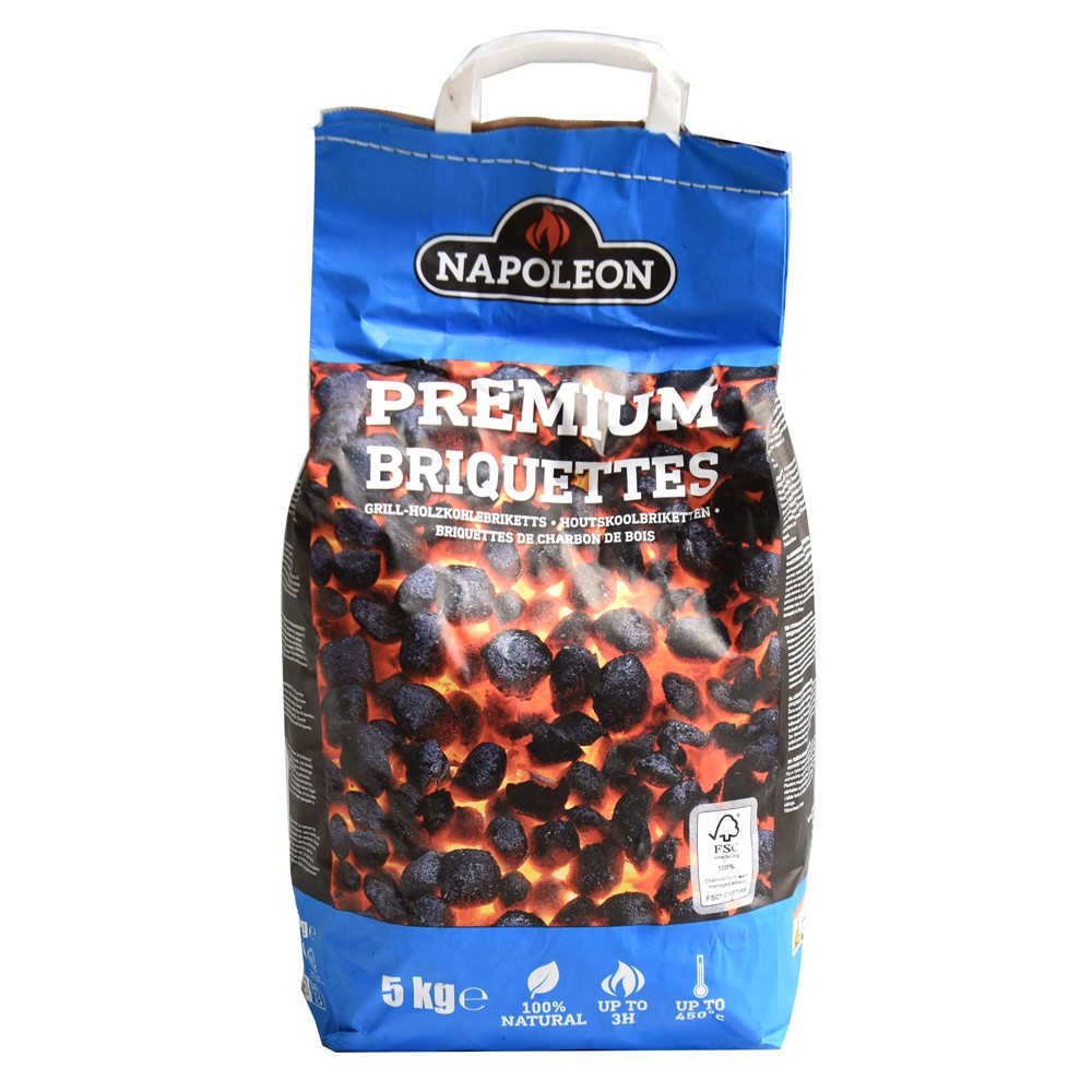 Napoleon briquettes are incredibly easy to light and glow quickly so you can start grilling right away. Thanks to the mix of maple, birch and beech wood, the briquettes burn slowly and evenly, promising long-lasting heat that can be used to cook for hours. Packaging 5 kg. 100% natural. They stay on for about 3 hours.