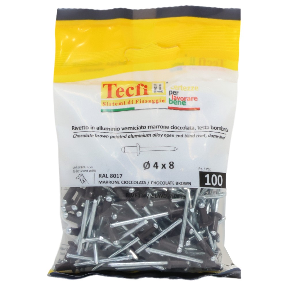 brown dome blind rivets, al/zp steel RAL 8017, Ø 4x8mm, Bag 100