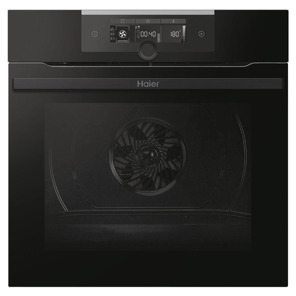 Turn on the amazing with I-Turn Series 2, Haier's connected oven with a smart interface and knob for enhanced usability. This stylish oven gives your kitchen a modern, minimalist look thanks to perfectly proportioned and symmetrical design incorporating black satin plastic and brushed stainless steel. Thanks to artificial intelligence features such as Climatech, that guarantees perfect heat distribution, and Cook with me, your personal cooking assistant that works with the hOn app, the I-Turn Series 2 will take your kitchen into the new connected cooking era. The perfect distribution of heat, humidity and air in your oven will ensure you a perfect uniformity of cooking to achieve excellent results. Thanks to a chef panel with a special avant-garde shape and a variable fan speed for an optimal air distribution and fas heating inside the cavity. The radial positioning of the fan cooling system, our Ventilaction helps you keep a constant temperature inside, without heat loss or overheating the handle, the surrounding furniture or electronics outside the oven. Recipes on board: an extensive cookbook constantly at your fingertips. With Haier, you can upload lots of special recipes directly onto your oven's control unit, each with its own automatic cooking program.To prepare a great menu you need a great repertoire and a great oven! Recipes on hOn App: we have a catalog, always up to date, of 300 recipes and fifty video recipe to guide you step by step while cooking. You can even set them on your oven remotely via Wi-Fi with a special app. The telescopic guides have been designed to make pulling out trays easier than ever, so you can check the progress of your cooking at any moment and replace the trays without keeping the door open for longer than necessary. The easy use means less heat is lost, so it's more efficient, too. The H2O cleaning system is a hydrolytic system that allows you to clean the oven in a simple, fast and economic way. Just fill the dedicated space at the bottom of the oven with 300ml of water, set the related program and let the oven go for 30 minutes. At the end of the cycle, dirty residuals can be easily wiped with a sponge. Multi tasking might be your way of living, and that's great! That's why all our ranges are connected to let you access recipes, tips and hints at any time during your cooking. Whether you want to follow a recipe step by step or just suggestions to clean your oven, our app will guide you. The combination of a lateral lamp and a new clearer enamel with a smoother surface ensures you a perfect visibilty of your food, at all times while cooking. Set up the racks at the levels of your choice to give you the space you need. Your racks are easy to slide in and remove so switching couldn't be any more simple. Create the space you need, the only limit is your imagination! What if we could give not one but two reasons to convince you of our Grill power? With our I-Turn range models, you can select a single or a double grill mode, according to your needs. The Double Grill mode will give you a better and faster grilling to achieve a result that matches your expectations