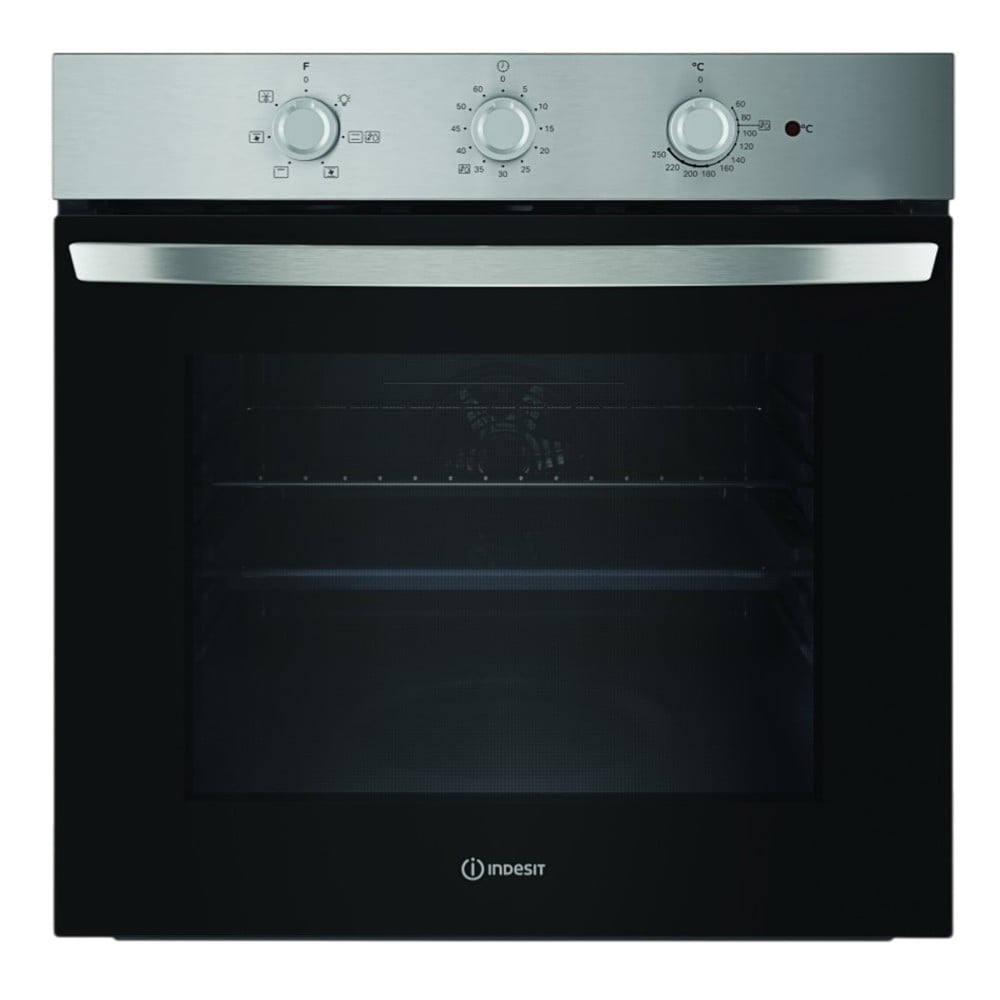 This Indesit fan oven features a stainless steel design that combines practicality with performance, allowing anyone to achieve delicious cooking results the whole family will enjoy. Designed for convenience, this 66L capacity oven includes dials for manual control of both temperature and timer settings, helping you easily keep track of cooking times. And with a UK plug fitted, you just plug it in, and you're ready to go. Looking for a golden finish to your meal? Our Turbo Grill combines the intense heat of the grill with the even warmth of the fan to cook your meals faster and more evenly - perfect for achieving tender meat with a crispy skin. Cleaning your oven has also never been simpler. The handy Click&Clean system lets you easily remove the inner glass of the door while the Tilting Grill unhooks and tilts, making cleaning those hard-to-reach spots a breeze so you can spend more time with your family. What's more, this oven has has an A energy rating, offering energy efficiency to help keep your bills lower.
