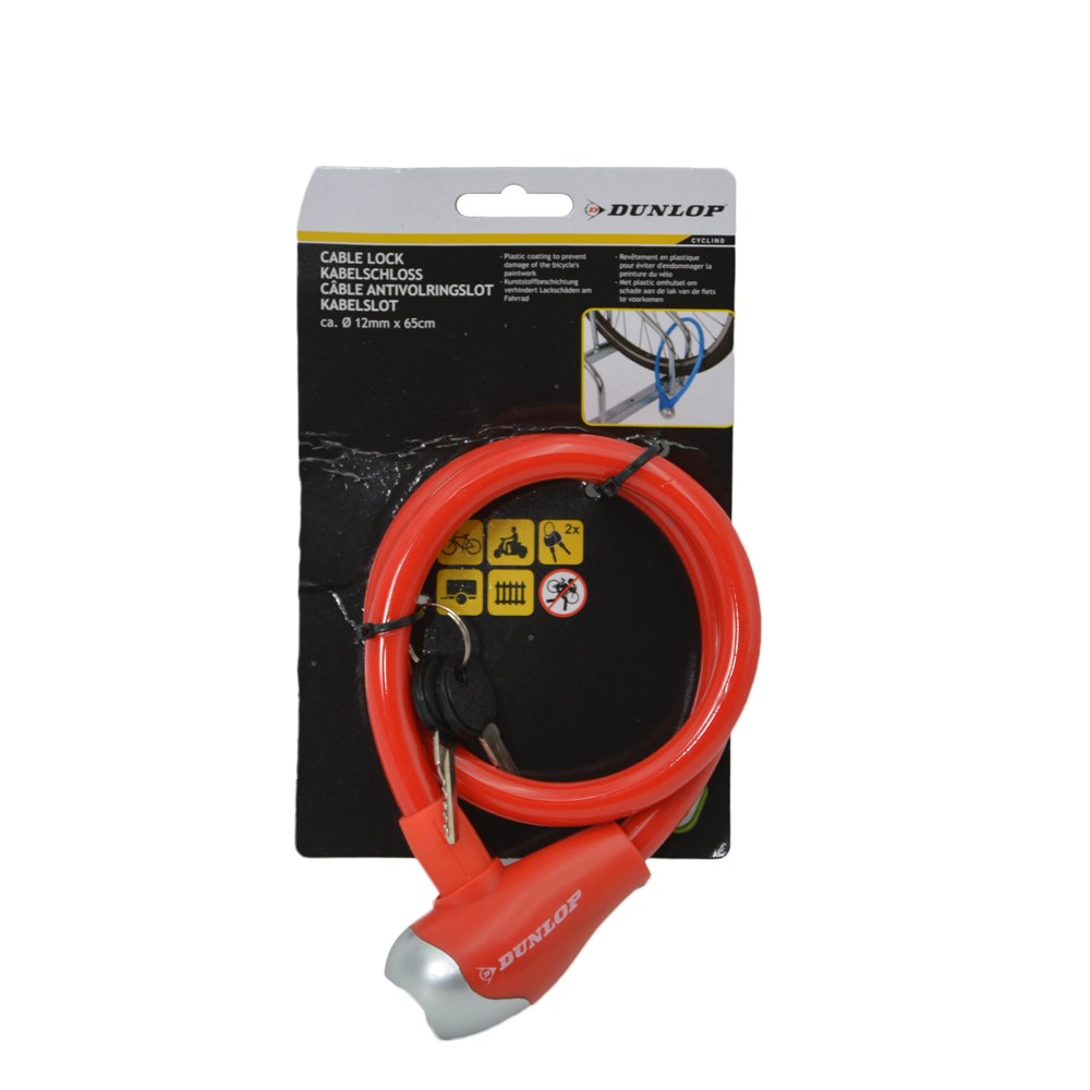 Make sure your bicycle from stealing thieves with this wheel lock at Dunlop. It is made of copper wire which is surrounded by a steel layer. Plastic coating protects the chain and prevents damage.