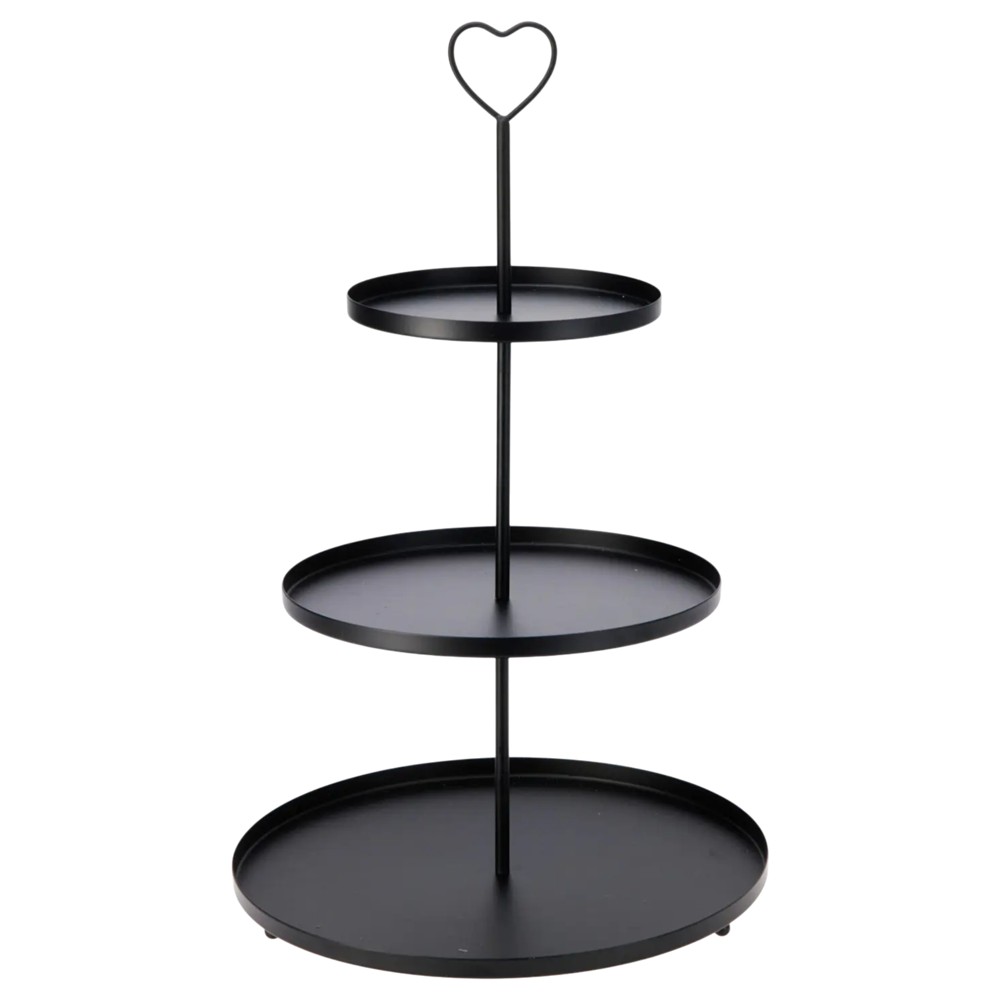 Cake/torte stand made of steel in black color, measuring Dia. 30 x H 48 cm. This sturdy and stylish stand is perfect for displaying cakes, pastries, or desserts in an elegant and organized way. The steel construction ensures durability and stability, while the black finish adds a modern and sophisticated touch to any presentation.
