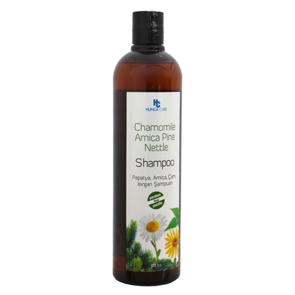 Hunca Care shampoo, with camomille, nettle leaf and Amica pine extract, with a pH level of 5.5. It moisturizes and gives brightness to the hair. The nettle extract provides the necessary blood circulation on the scalp and the camomille extract soothes the skin and cleans hair folicles.