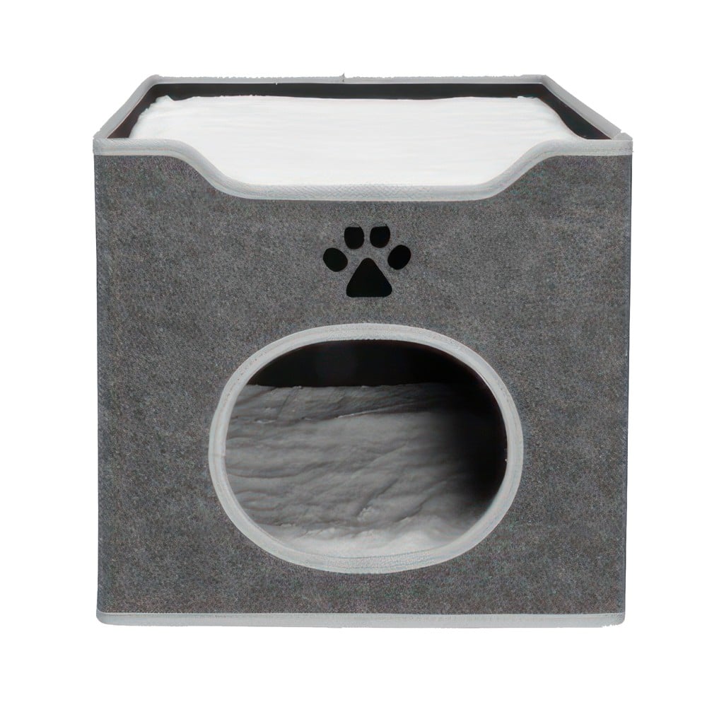 Warm and comfortable cube-shaped felt bed for cats, perfect for the comfortable rest of your feline. Equipped with removable cushions.