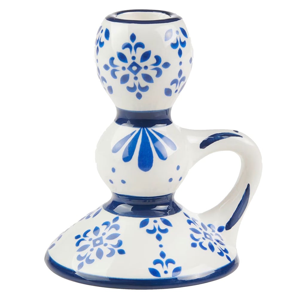 Candle Holder, ceramic, blue/white, 9.4x10.3xH11.8 cm