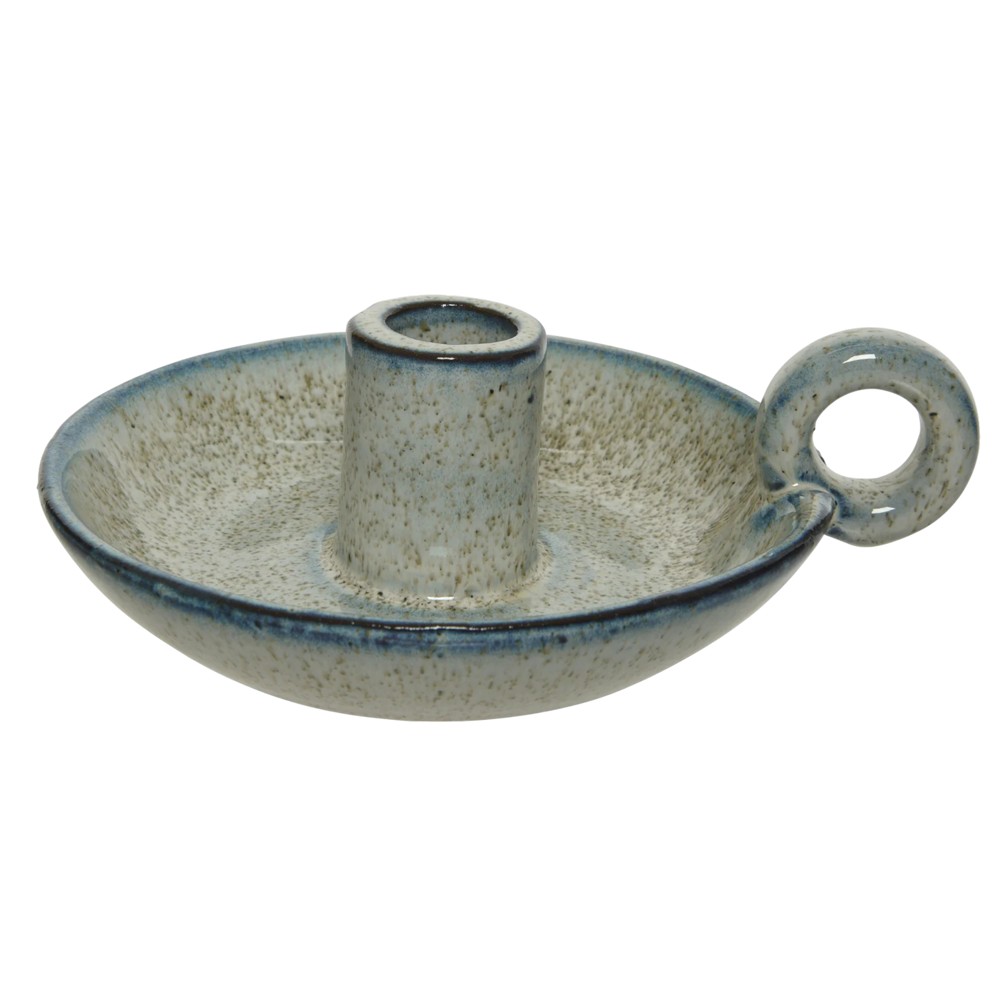 Candle holder, ceramic, white/blue, 13x16xH5.3 cm