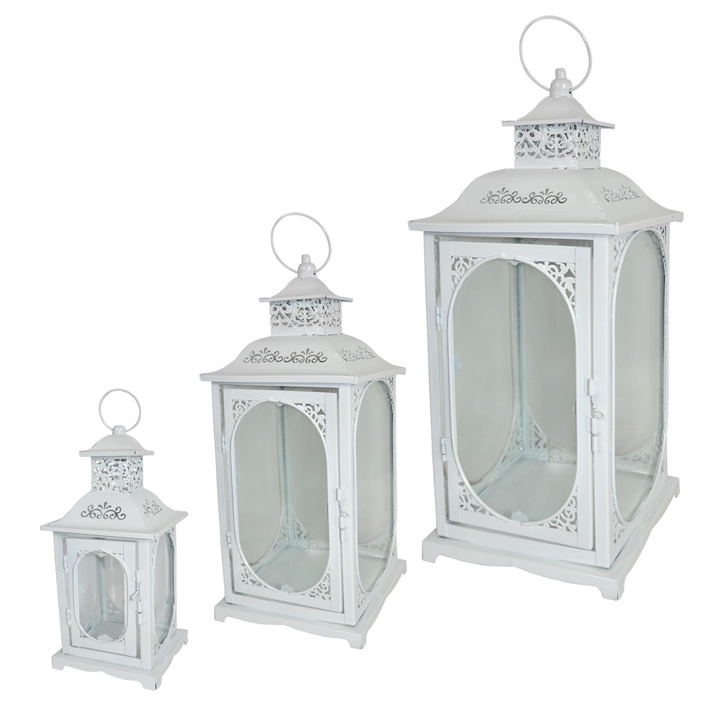 Add a touch of style to your indoor or outdoor area with this iron and glass candle holder lanterns. Lanterns are a wonderful way of lighting up your indoor and outdoor area, just add some simple tealights or a block candle and the glow will keep going long into the night. With the superb craftsmanship and affordable price this candle holder lanterns are sure to tastefully indulge your extravagant side. This Prospect Collection candle holder lanterns has an inspiring combination of design, functionality, and sophistication that will enhance any decor theme with style and charm for many years to come. The set include: