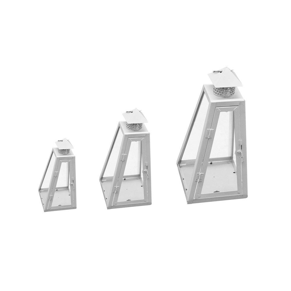 You're reviewing:Candle holder set of 3 pieces, metallic and glass, white, 26x26xH57 cm; 17.5x17.5xH40 cm; 12.3x12.3xH26.5 cm