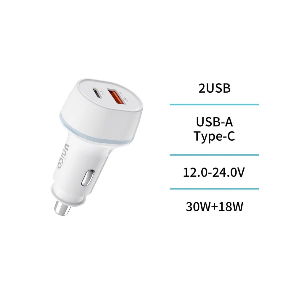The Unico CC1747 car charger is a powerful and convenient accessory for use while traveling. With 48 W of power and two charging ports – USB and Type-C, it enables fast and safe charging of phones, tablets and other smart devices simultaneously. The compact design makes it easy to place in the car's cigarette lighter port, while its functionality guarantees efficient and reliable use during every trip. This charger combines safety, speed and modern style, making it an indispensable device for every driver.