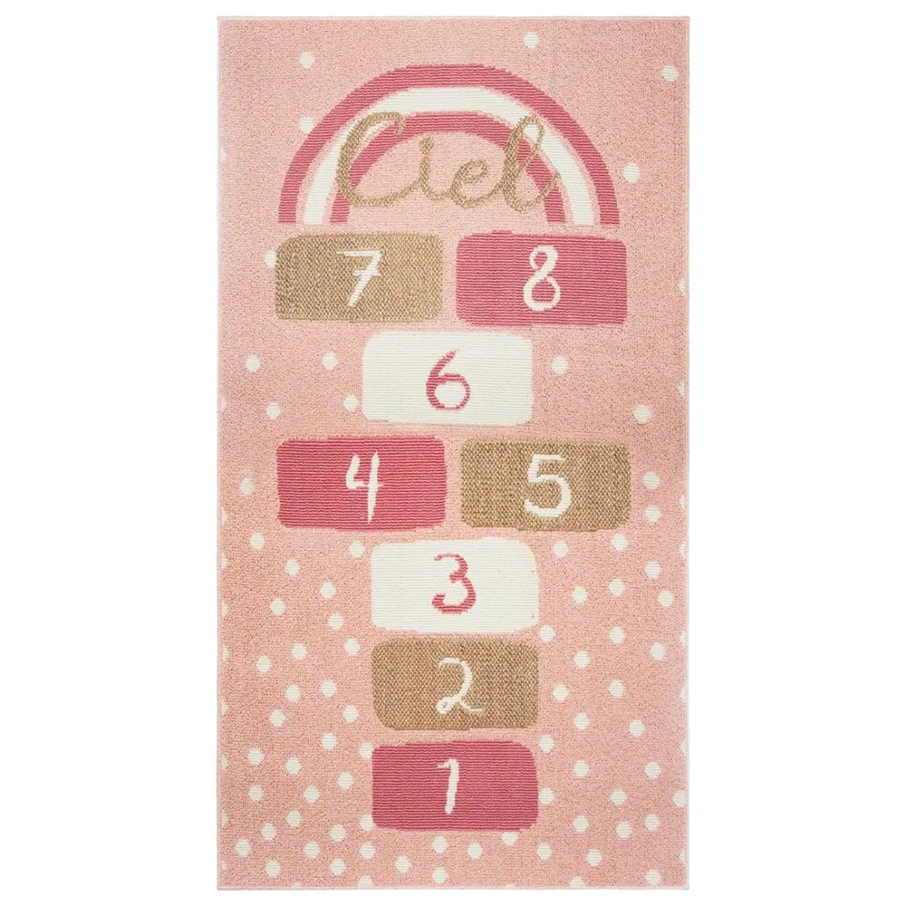 Carpet for children's room designed with numbers. It has a size of 80x150 cm, in pink color. It is used for decorating children's rooms.