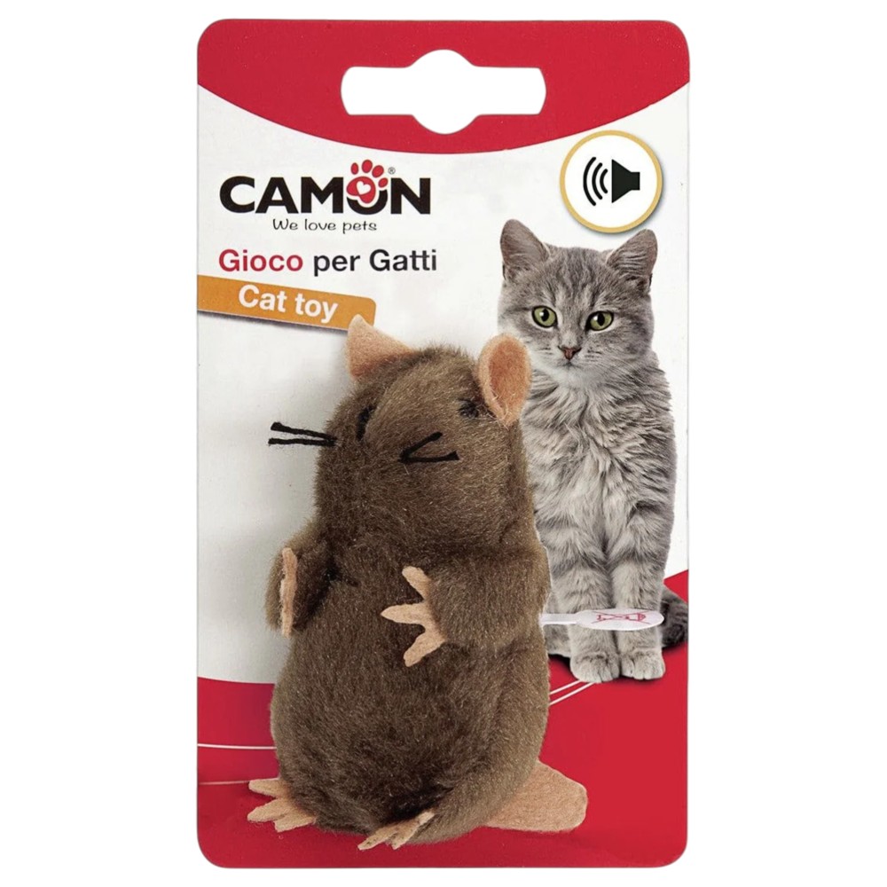 The Camon mouse-shaped cat toy is ideal for stimulating your cat's natural hunting instinct and providing your cat with constant entertainment. Made of soft plush material, measuring 8 cm, it is suitable for catching, playing and cuddling. Equipped with sound, this toy attracts your cat's attention and keeps it active for longer, helping to reduce stress and boredom. A perfect choice for fun-filled daily games.