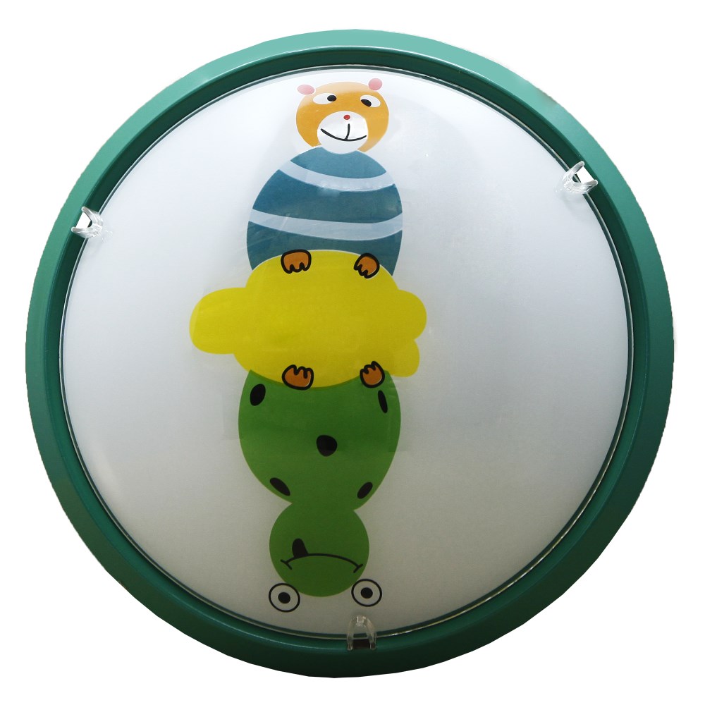 Very intersting composition with circle base combined with so dear animated personage for children this ceiling lamp will bring joy and happiness to your childrens room.
