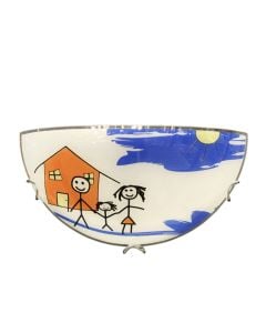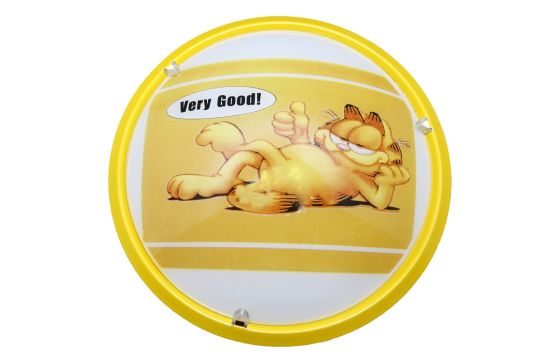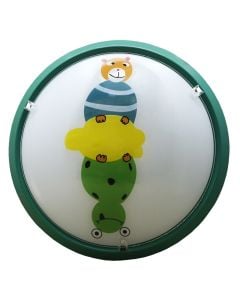 Very intersting composition with circle base combined with so dear animated personage for children this ceiling lamp will bring joy and happiness to your childrens room.