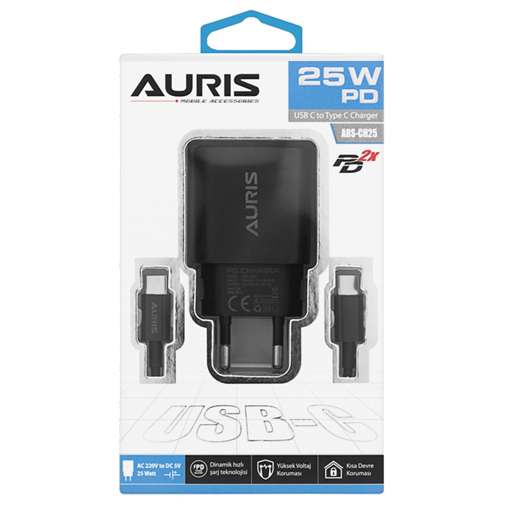Charger + plug, Auris, CH25, 25 W, Type-C plug - Type-C