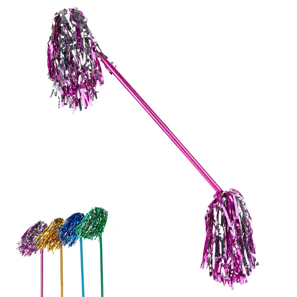 Double-sided fan booster rod, with a 55 cm long plastic material tail, with spark plugs and tassels in aluminum foil material at the end.