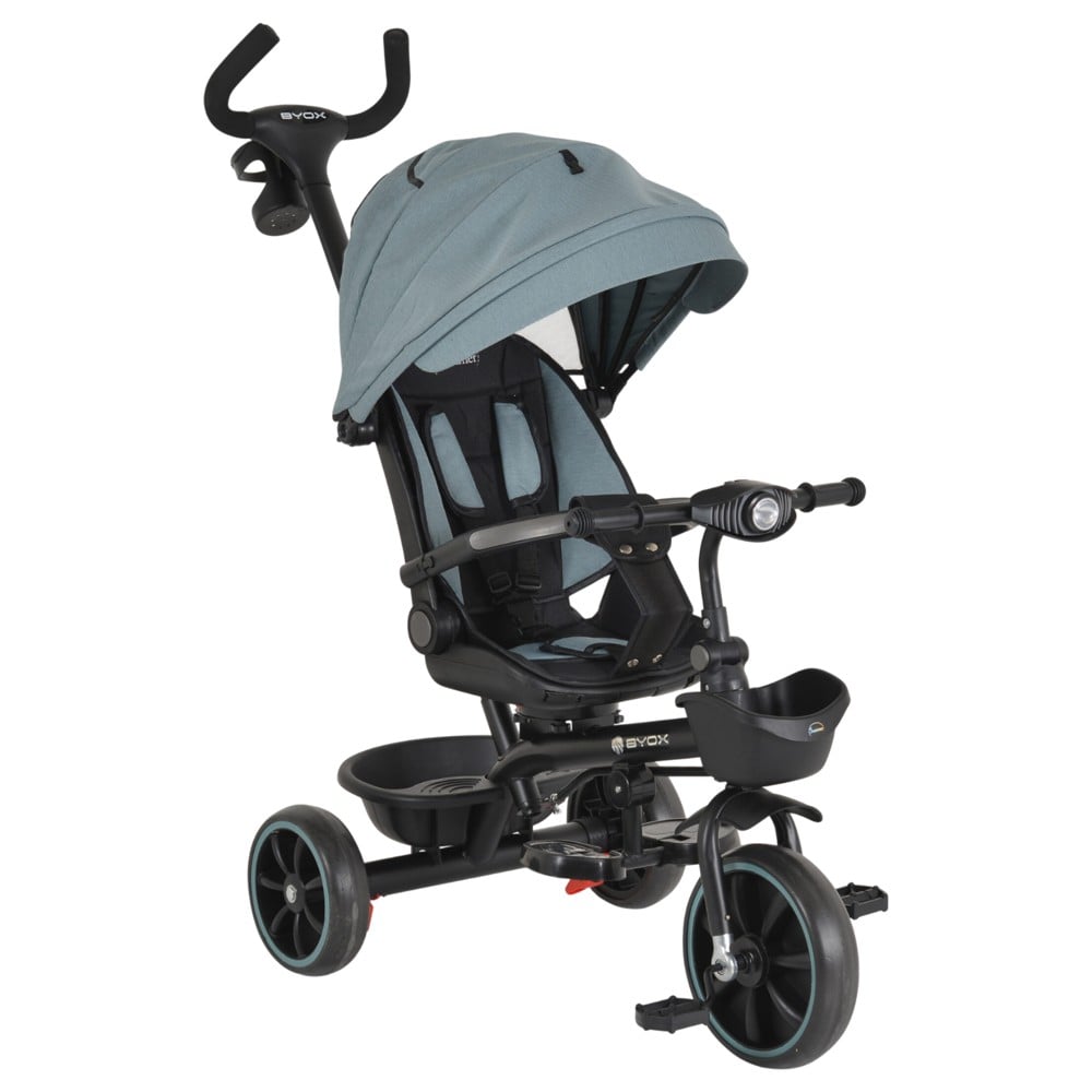 The Byox Summer tricycle is designed for children over 12 months, with a maximum weight of up to 25 kg, offering fun, safety and motor development. Thanks to its many features, it adapts to small and older children, offering maximum flexibility and comfort. Flexible use: can be used without the canopy, parent handle and protective board. It has a 360° rotating seat for varied movement and play. Adjustable rear support for the child's comfort. Foldable handlebar for easy transport. Footrest for younger children. Adjustable parent handle for front wheel steering control. EVA wheels for smooth and quiet movement. Removable protective board and 3-point seat belt. Front and rear toy basket and bottle holder. Musical panel for fun during walks. Byox Summer Blue is an ideal combination of fun, safety and flexibility, making every walk a pleasant experience for the child and the parent.