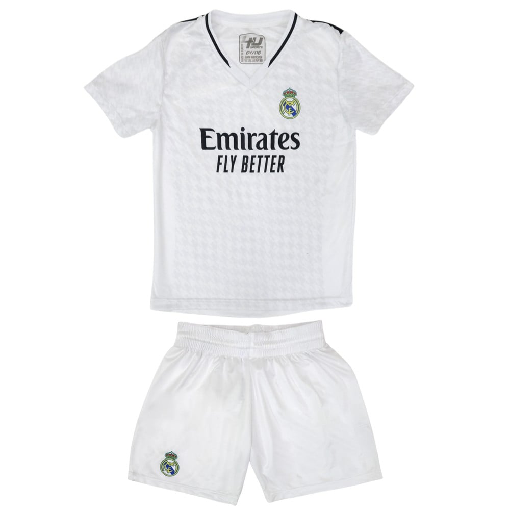 This kids' football suit inspired by the famous Real Madrid football team is perfect for any little football fan. Its design is an attempt to bring the traditional colors of the club, giving the child the opportunity to feel like a football star. This suit is ideal for matches, training or other sporting activities, allowing children to express their passion for football and Real Madrid, while being comfortable and safe.