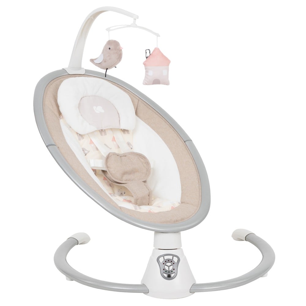 Electric relaxation chair for babies, made of aluminum base material and non-allergic textile for children. The chair consists of 5 vibration levels, 12 quiet melodies and 5 nature sounds, with adjustable volume. It has a timer that can be set to 3 different time intervals (15, 30 or 60 minutes) so that your baby can enjoy a good night's sleep and then it turns off automatically. It has a 5-point safety belt, and is suitable for children with a maximum weight of up to 9 kg.