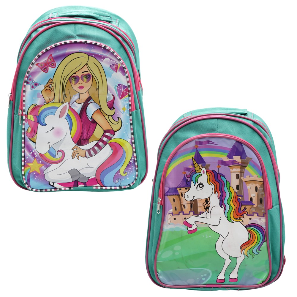 Children's school bag, polyester, with pictures of Pony and Pony with Barbie