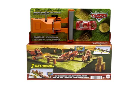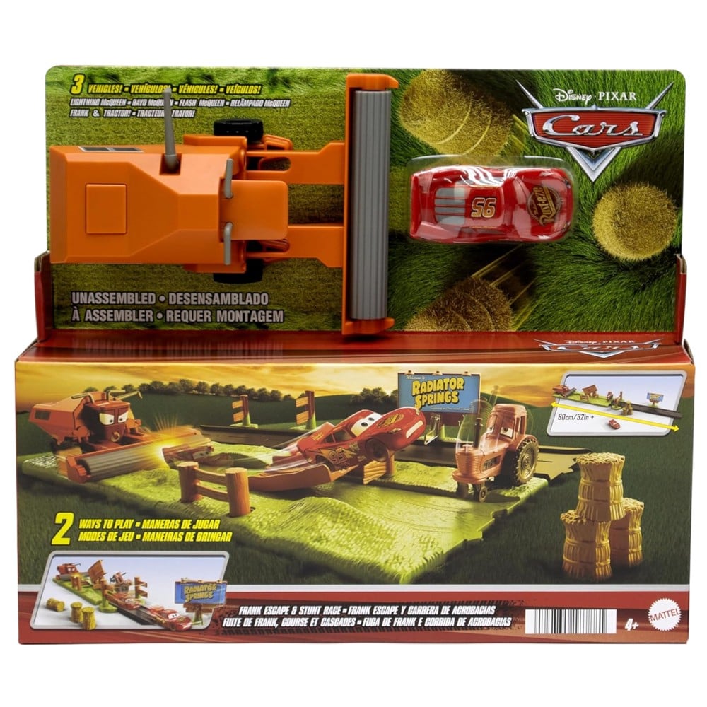 Toy for children, Disney, Pixar Cars, Frank Escape & Stunt Race is a toy for children over 4 years old. It offers a fun experience with cars from the popular movie Cars, where children can create races and acrobatic actions. The toy includes a Frank car and opportunities to carry out various maneuvers and escapes. Designed to stimulate creativity and fun.
