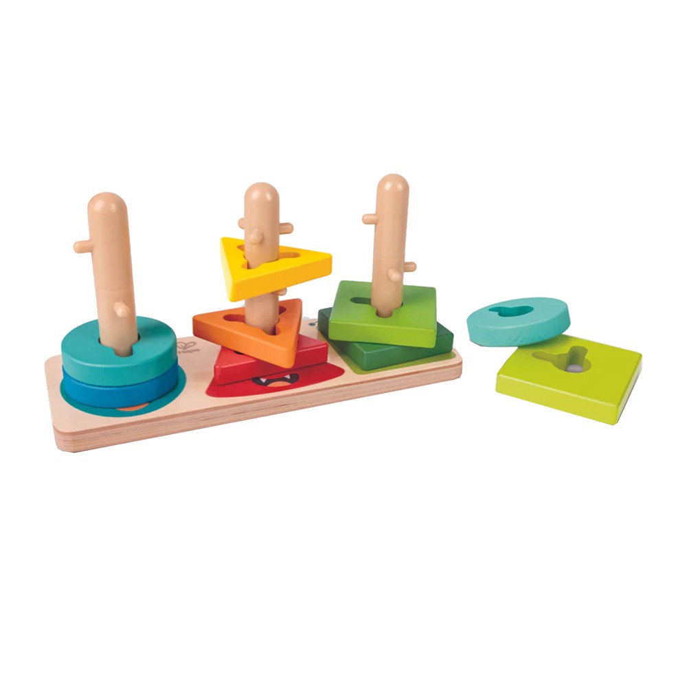 This fun collection set will provide hours of fun as the spikes in the three monsters' noses prevent the cubes from falling. However, with patience and skill, monsters can be tricked. The stacking stones fit the noses only if they are turned correctly. It supports the development of fine motor skills and the recognition of colors and shapes. It supports logical thinking and stimulates storytelling.