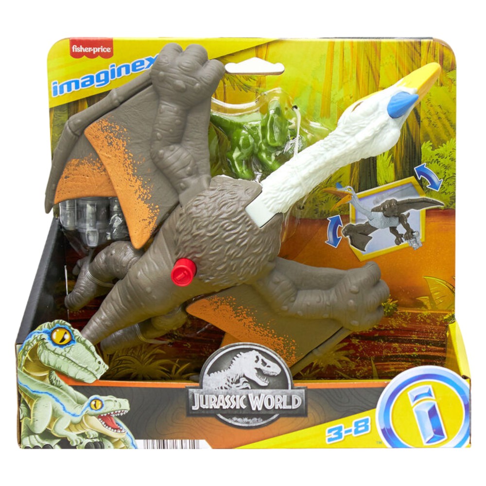 Children can relive their favorite Jurassic World Dominion moments and act out their own exciting dinosaur adventures with this Imaginext Jurassic World Soaring Quetzal dinosaur toy from Fisher-Price. Kids can push the Power Pad to watch the dinosaur's wings flap as they send it "flying" on the hunt.